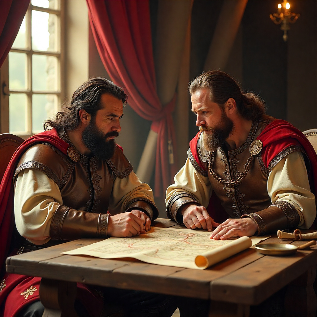 Его смех разнесся эхом над каменными зубцами. Внизу, подняв новое облако пыли, к воротам замка подъехал сам Вальдемар фон Штауфен. Его конь, могучий вороной жеребец, фыркнул, когда тяжелые дубовые створы со скрипом распахнулись. Герцоги встретились на внутреннем дворе не как правители соперничающих земель, а как старые друзья, чьи предки плечом к плечу стояли против тьмы. Обнялись крепко, похлопали друг друга по спине – звук, как будто стукнулись два добротных щита.