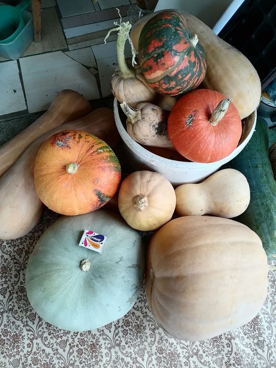 Не спеша убираю урожай. Вот такие тыквы наросли.