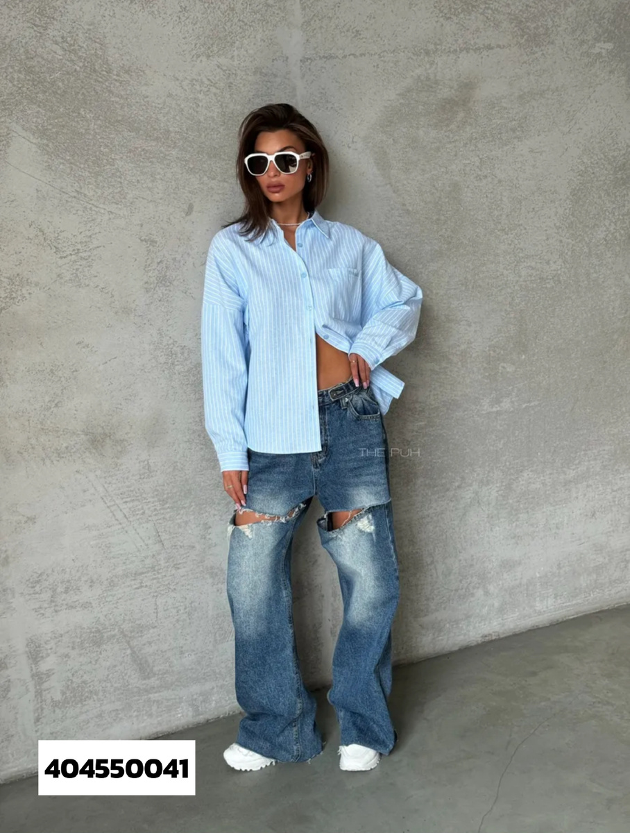 Совет стилиста: рваные колени уже создают акцент. Держите верх «чистым»: однотонные рубашки/лонгсливы, минимум декора. Если хотите согреться — добавьте тонкий гольф под рубашку и оставьте пару верхних пуговиц расстёгнутыми для вертикали.