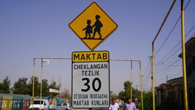 Начат процесс установки новых дорожных знаков возле школ - передаёт пресс-служба Управления безопасности дорожного движения Главного управления внутренних дел города Ташкента.