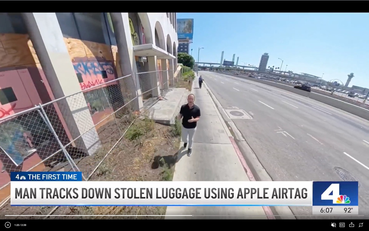 AirTag довел туриста до логова воров, которые уже успели надеть его вещи. Путешественник Дэниел Скотт превратил кошмар в аэропорту в поучительную историю, когда трекер Apple AirTag привел его прямо к украденному чемодану и ворам, которые уже щеголяли в его одежде. Об этом рассказывает американский телеканал NBC Los Angeles. 22 августа Скотт прилетел в Лос-Анджелес из Солт-Лейк-Сити и обнаружил пропажу своего багажа. Пока он метался между конвейерами, а сотрудники аэропорта разводили руками, на телефон пришло уведомление от спрятанного в чемодане трекера AirTag. Устройство показывало, что багаж покидает аэропорт и движется к стоянке для каршеринга. Скотт не стал ждать и немедленно побежал следом. Сигнал продолжал двигаться через дорогу, пока не остановился в полутора километрах от аэропорта у заброшенного здания. Туда то и вызвали службу безопасности аэропорта. Когда прибывшие офицеры просветили фонариками внутренность строения, они обнаружили несколько человек. Один из них уже успел
