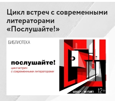 Иногда идеи носятся в воздухе. Так и получилось с циклом встреч с современными авторами, который начинается в КЦ "ЗИЛ". Веду его я. Вначале — подтверждение тезиса. В июле в РГБ ("Ленинка") прошли поэтические чтения, на которых встретилось старшее и молодое поколение современных российских поэтов. "Старших" представили, в числе прочих, Михаил Мамаев и Ян Берёзкин, "младших" — студенты Литинститута им. А.М. Горького. Наша идея поэтических встреч родилась сразу после концерта к 9 мая в КЦ "ЗИЛ". Молодые сотрудницы, которые снимали наш концерт, потом сказали, что им очень понравились участники и их стихи. И так появилась идея цикла "Послушайте!" Разумеется, это отсылка к знаменитому стихотворению Владимира Маяковского. Я буду говорить с авторами о творчестве. Мы (точнее, они) будем читать стихи и прозу, свои и не только, потому что никакой Мастер не существует сам по себе. У него есть Учителя и, в лучшем случае, Ученики 🤗 Ниже анонс: «Послушайте!» — цикл творческих встреч с совре
