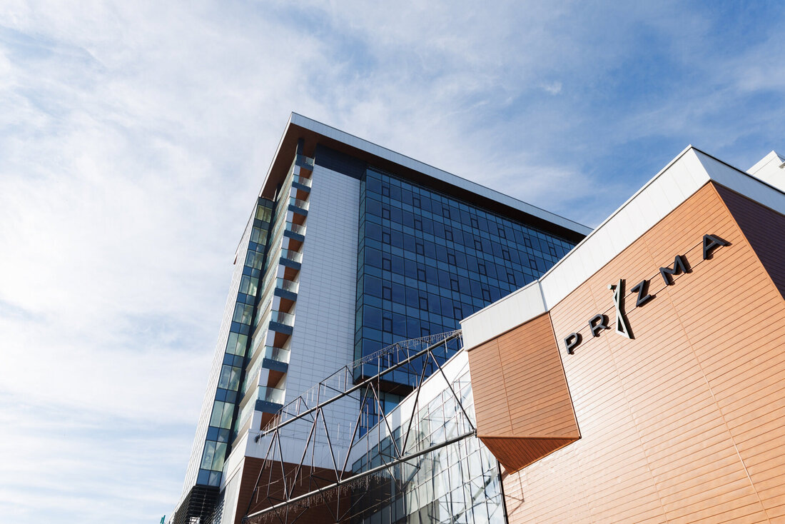 В многофункциональном комплексе “Призма” представлены торговые и офисные площади. Его общая площадь составляет - 70 тысяч квадратных метров. Из них офисная часть занимает 15 тысяч квадратных метров.