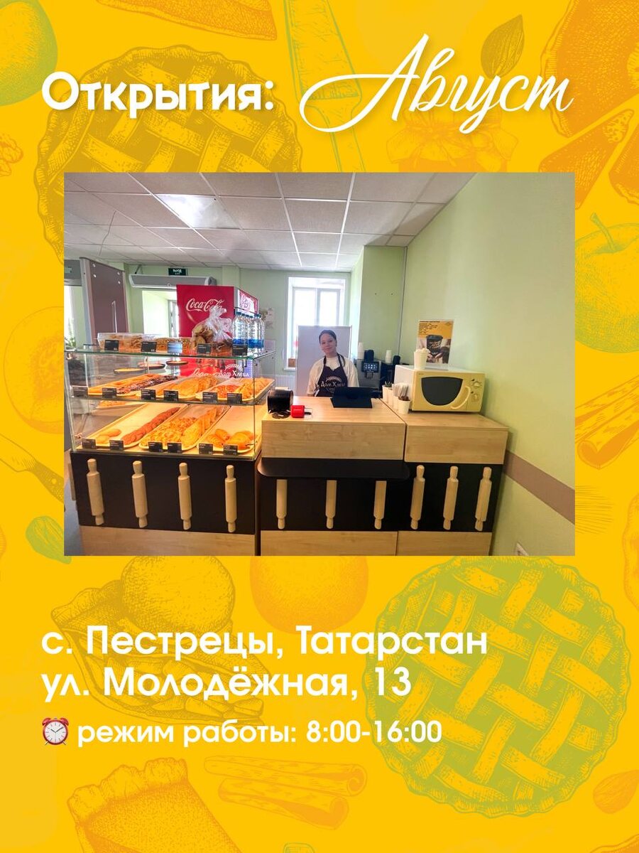 🎉 С огромной радостью мы объявляем о расширении нашей дружной семьи «Дом Хлеба»! Приветствуем новых партнеров - с. Пестрецы, Татарстан. 🏆 Желаем вам море клиентов, полные витрины ароматных круассанов и хрустящих багетов, и, конечно же, самых вкусных побед! 🤩 Для нас «Дом Хлеба» — это не просто франшиза. Это сообщество единомышленников, которые день за днём делают мир немного добрее и вкуснее. Спасибо, что становитесь частью этого.