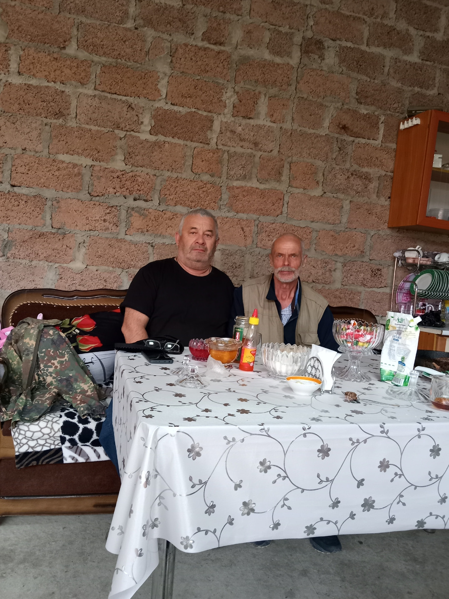 Из машины выходит мужчина здоровается со мной по русски и начинает расспрашивать кто я что я откуда куда . Говорит собрался траву косить на своем свободном участке и предлагает. Траву я косить сейчас не поеду, поехали ко мне в гости. Говорит я тут рядом живу, вон сейчас в гору , а там недалеко я и живу. Я говорю это вам легко в гору, а мне то туда не так просто. А он говорит велосипед у магазина оставишь, а мы поедем на машине. Он поговорил с хозяином магазина, велосипед я оставил и мы поехали к нему в гости. Он предупредил жену что мы едем. пока мы ехали жена пожарила мясо, накрыла на стол. Кавказское гостеприимство вернулось. Стало как то спокойней. Вкусное мясо, чай из трав мед ,варенье , конфеты и беседа о жизни. Он рассказал, что у него двое сыновей, у обоих свои семьи. Старший в зоне СВО у него трое детей и живет он отдельно в своем доме, у младшего двое детей он то же в армии служит в Грозном и живет вместе с ними. Сам он сейчас работает в Херсонской области, восстанавливают дом престарелых , приехал на несколько дней в отпуск. В общем все хорошо. Семья дети внуки как и должно быть. Спроси я его о странном приеме меня в первый день на территории Чечни. С начало он не мог понять как я попал в этот район Чечни и может я что то напутал, когда разобрался сказал что люди бывают разные. И это действительно так. После душевного завтрака, это было рано утром, он пытался нагрузить меня продуктами в дорогу , я отказался просто некуда класть и тащить все это на себе. Вот этот гостеприимный хозяин.