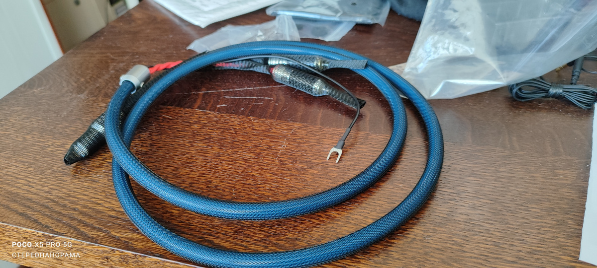 Однако парой недель спустя, я на Али Экспрессе увидел фонокабели внешне выглядевшие ну прямо таки отлично. И за относительно смешную цену. И решил заказать на пробу предполагая, что даже если результат меня не устроит, продать будет не так уж и сложно. Полутораметровый кабель обошёлся мне в 5000Р и, спустя пару недель, я уже бандероль получил. Живьём кабель выглядел ещё лучше чем на фото, однако такие вещи оценивают не по внешнему виду, а по их влиянию на звук. Но поскольку к тому времени я уже поставил на место старый фонокабель, а менять их несколько хлопотно (надо вытащить проигрыватель из стойки, подлезть снизу и выкрутить шуруп крепящий прижимную скобу, отсоединить кабель от разъема тонарма, а затем, в обратной последовательности, проделать все эти манипуляции с новым кабелем, а ещё заново отрегулировать проигрыватель по уровню вернув его в стойку и это без учёта того, что если результат не понравится, придётся всё возвращать назад), то отложил эксперимент на неопределённое время. И у меня это время ещё долго могло бы не наступить, но три месяца спустя ко мне обратился приятель с просьбой привезти этот кабель ему на тест поскольку то, как у него звучит проигрыватель (Micro Seiki BL-91 кстати говоря) ему совершенно не нравилось. А заодно он попросил чтобы я захватил и несколько приличных межблочников, поскольку почти все его провода были либо недорогие фабричные No Name, либо самодельными.