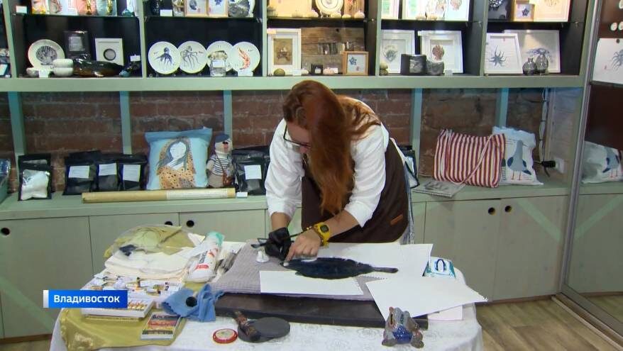 Древнее искусство гётаку возрождает художница во Владивостоке. Это японский метод печати рыб на ткани и рисовой бумаге. Таким способ в 19-м веке хвастались своим уловом. А сейчас эти принты не просто трофейный символ, а новый вид памятных подарков из Приморья. Как в XIX веке японские моряки могли похвастаться у кого хвост больше? Фото не сделаешь, морозилок тоже не было, на память засушить жалко. Так и придумали гётаку — печать трофейных рыб. У нас печать не трофейная, а скорее сувенирная. На рисовой бумаге. Популяризация японской культуры и просвещение — готовя на кухне, обычно не до разглядывания плавников и чешуек. А объект надо подготовить тщательно - отмыть и просушить. Сейчас художники используют различные краски, а раньше брали специальные чернила. Чтобы потом отмыть и съесть рыбу, без вреда для здоровья. Анастасия Дейнега 15 лет проработала журналистом на телевидении в Благовещенске. А по профессии педагог. Но яблочко от яблони... - Вы учились в художественной школе? Анастасия