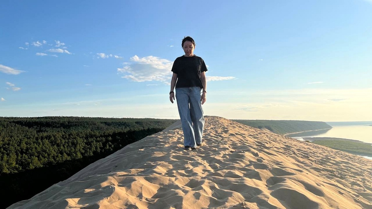 Песчаные дюны - Тукуланы, с одной стороны которых бескрайний лес, с другой - красавица Лена, - одна из удивительных природных достопримечательностей Якутии, которую мы увидели во время однодневного тура на Ленские столбы. Чем ещё запомнилась эта поездка читайте в первой и второй частях. После красивой фотосессии на Лене наш катер отправился к песчаным дюнам, которые входят в состав национального природного парка «Ленские столбы». На Тукуланы забираться пришлось по такой песчаной тропе, кое-где хватаясь за верёвки. Зато чем выше, тем великолепнее виды открывались. Ощущение будто попал в настоящую пустыню, если б не река и лес рядом. Говорят, с песчаных гор на сноубордах катаются. Я б попробовала, не на чем было, увы. Налюбовавшись вдоволь якутской пустыней, поспешили к последней точке маршрута - в бизонарий. До места обитания лесных бизонов добирались весьма экзотично - на якутском «тук-туке»😁 Подпрыгивая на колдобинах, наблюдали любопытные пейзажи. Заброшенную ферму, наприме
