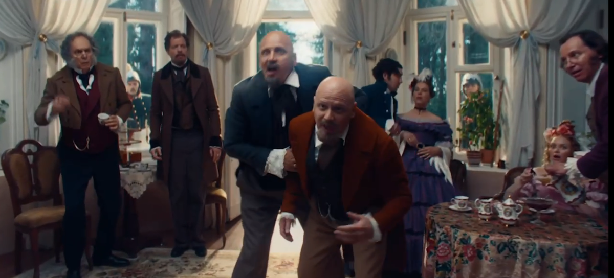 Банк В-Т-Б запустил опять и ранее новый рекламо-ролик из серии "Классика" Снятый по мотивам классических произведений их новым этюдом стал гоголевский "Ревизор"! Тут они переосмыслили гоголевскую классику и нашли решения всем участникам действия, всем выгодные решения. -Господа, к нам едет ревизор? Инкогнито! -Только мы в гостиницу... -Как вдруг молодой человек... -Хлестаков. -Обязанность моя как градоначальника - заботиться.... Пожелаете посетить городские тюрьмы? -Лучше богоугодные заведения. -Обманув нечистых на руку чиновников и горожан Хлестаков одолжит деньги и сбежит... Вот был бы тогда ВТБ! -Его счёт-с! -Хлестаков не Ревизор. -Неужто вы? -Приведите город в порядок. И не бойтесь проверок. -На то нужны деньги. -Сначала честность. И ВТБ поможет с дорогами. Культурными, спортивными, богоугодными и другими городскими заведениями. -А для жителей? -Разумеется. - ВТБ! -Я первый! Отличные зарплатные и пенсионные программы. И современные условия. -Для городского... -И малого.