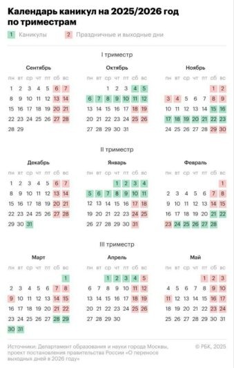 Переход к триместровой системы был обусловлен сложной эпидемиологической обстановкой в городе, бушевал COVID-19. Однако система прижилась и сохранилась. Городская администрация публикует «Календарь камышинского школьника на 2025-2026 годы». Он, к слову, полностью совпадает с календарём московских школьников, обучающихся по триместрам (публикует РБК).