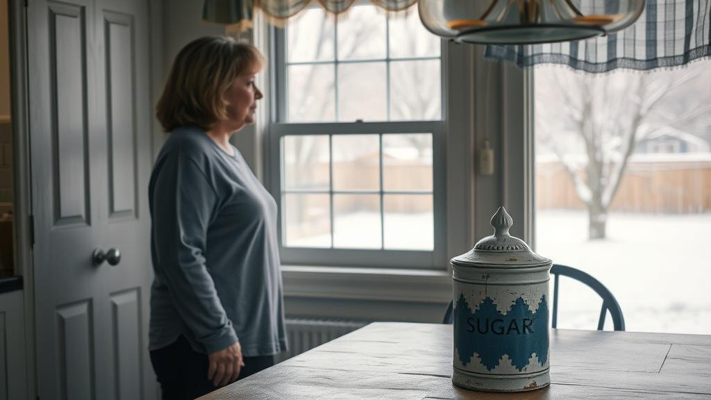 В маленькой кухне на третьем этаже старого кирпичного дома Наталья стояла у окна и смотрела на мартовскую кашу из снега и грязи во дворе. Чашка с остывающим чаем ждала её на столе, рядом лежала газета, которую муж, Игорь, оставил утром. В углу стола стояла фарфоровая сахарница — белая, с голубыми цветами и тонкой трещиной по боку, словно нитка по фарфору. Трещина появилась прошлой осенью: Наталья задела локтем, когда спешила к телефону. Сахарница уцелела, только стала уязвимее.