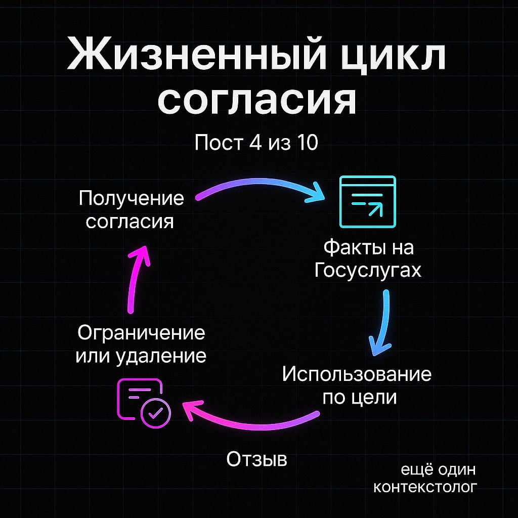 Персональные данные и согласия через ЕСИА. Пост 4 из 10. Коротко. Это пока проект закона. Но по российской практике подобные проекты часто становятся нормами с доработками. Готовимся заранее, чтобы не бегать в последний день. Что планируют изменить? 1️⃣На Госуслугах появится кабинет с фактами обработки ПДн: кто, что, на каком основании. 2️⃣Давать и отзывать согласие можно будет через ЕСИА. Формы и порядок утвердят позже. 3️⃣Появится удобная жалоба через портал: увидел лишнюю обработку и сразу отправил обращение. Для бизнеса - это потенциальная проверка из РКН. 4️⃣Уточнят режимы для специальных категорий данных: здоровье, биометрия, убеждения и так далее. Для них часто нужны особые основания, а не только согласие. Для кого это и что делать бизнесу? Ввести в штат должность DPO: ответственный по защите персональных данных в компании. Внедрить практику DPIA: оценка воздействия обработки на права и свободы граждан. По-простому это чек-лист рисков перед запуском новой обработки ПДн. Ч