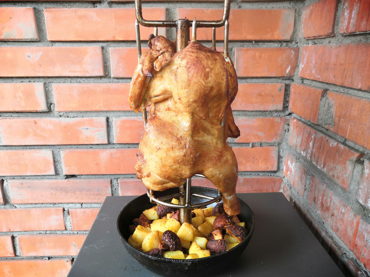 Курица в тандыре с овощами — сочное и простое блюдо.