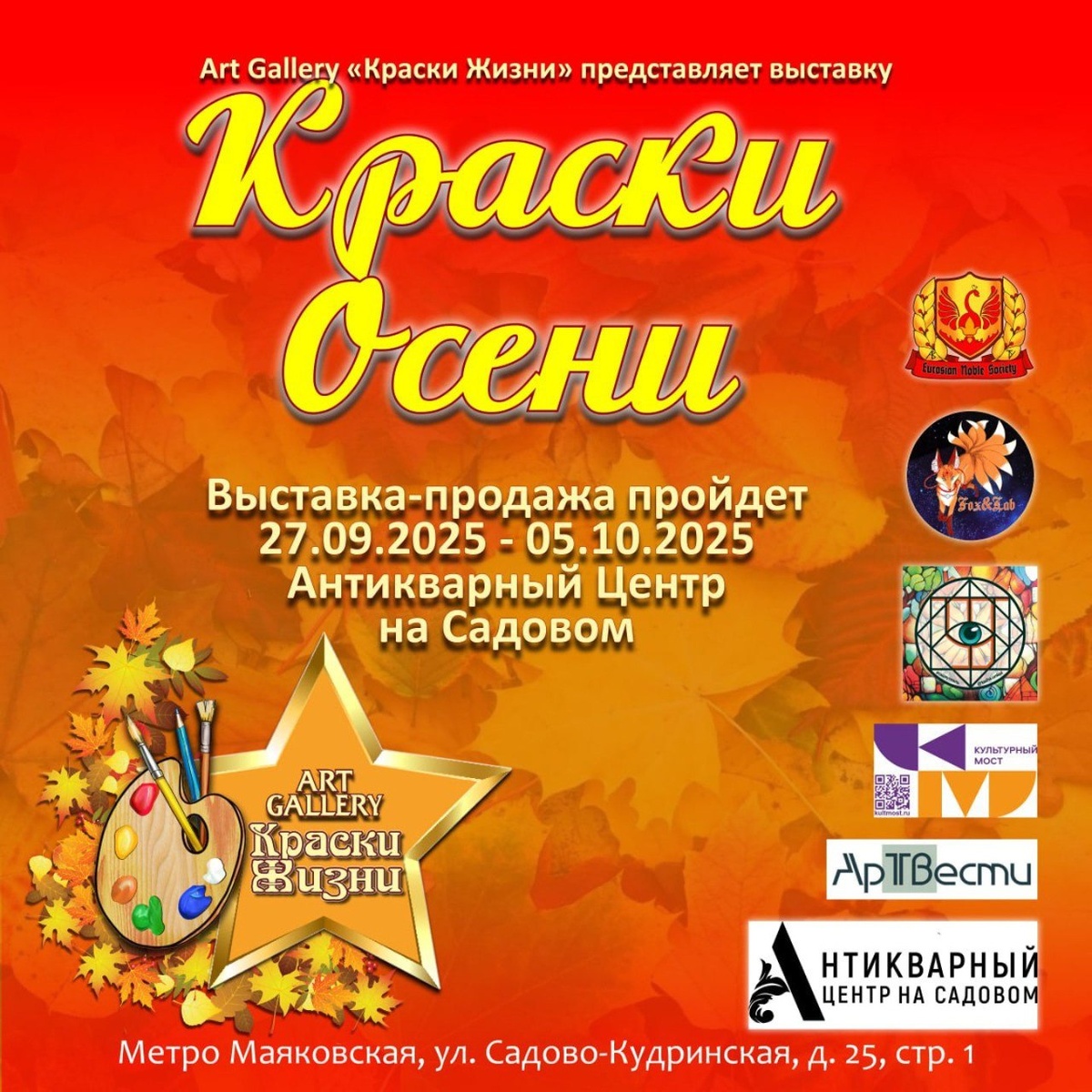 «КРАСКИ ОСЕНИ» Приглашаем принять участие в 11ой международной выставке-продаже картин современных художников «КРАСКИ ОСЕНИ» в Москве. 27.09 – 05.10. 2025г АДРЕС: м. Маяковская ул Садовая-Кудринская 25 Антикварный центр 3 этаж. Выставочный зал УСЛОВИЯ УЧАСТИЯ: 1 работа 4 т.р 3 работы 11 т.р. 5 работ 17 т.р. 10 работ 25 т.р По участию с большими картинами (ширина более 80 см) условия обговариваются индивидуально. НА ВЫСТАВКУ ПРИНИМАЮТСЯ: Творческие, авторские работы, с позитивной тематикой, в любых направлений и жанрах искусства, без агрессии В РАМКАХ ВЫСТАВКИ (входит в оплату) ОРГАНИЗАТОРЫ ПРЕДСТАВЛЯЮТ Проведение выставки в указанные сроки; Развеска картин, Презентация и продвижение художников в соц.сетях Продвижение в соц.сетях в рамках выставки (анонсы, именные афиши, упоминание в публикациях СМИ-партнеров) Диплом участника выставки. Фотосъемка. Видеосъемка. Запись интервью. … Подробнее на АртВести: https://artvesti.ru/news/afisha/2025/09/09/kraski-oseni/