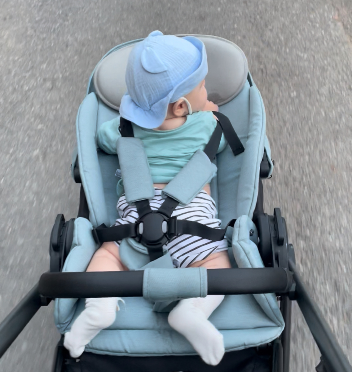 После трёх месяцев и до момента пока ребёнок не сел самостоятельно, нас спасал нестандартный способ езды в коляске.