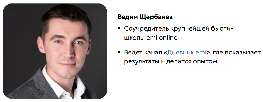Для этого мы обратились к Вадиму Щербаневу — соучредителю бьюти-школы emi online, который поделился своей историей, рассказал о лучших решениях в инфобизнесе, частых ошибках и путях их решения.