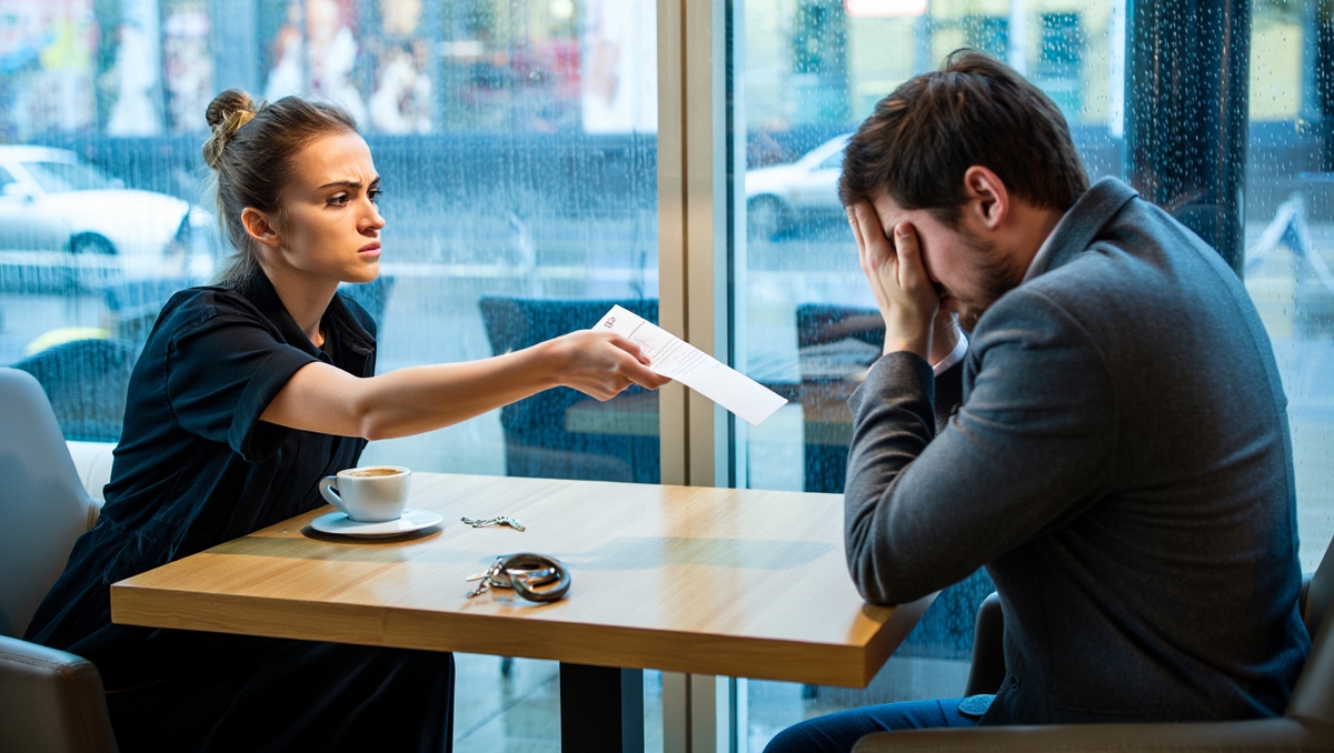 Она вышла из кафе, не оглядываясь. Олег остался сидеть за столом, глядя на ключи. За окном начинался дождь, и капли стекали по стеклу, как слёзы.