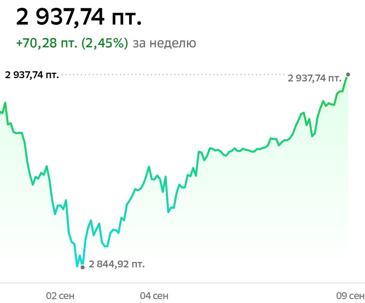 🏛Индекс МосБиржи — ~2940 пт. (+2,45% за неделю 🔼) 💭Начнём с прогнозов. 🏦Совкомбанк ожидает, что на ближайшем заседании 12 сентября Банк России снизит ключевую ставку сразу на 200 б.п., до 16%. Аналитики ✅SberCIB пишут, что к концу года ставка может опуститься до 15%. На этом фоне прогнозируется укрепление доллара к 92 рублям, юаня — почти до 13. Такое движение связано с сокращением продаж валюты экспортёрами, снижением реальной ставки и ростом импорта к концу года. Снижение ключевой приведёт к росту цен на облигации: в течение года доходности 5–10-летних ОФЗ могут опуститься до 12%. Полностью избавляться от флоутеров аналитики не советуют — процесс снижения ставки может растянуться. По прогнозу того же ✅SberCIB, 🏛индекс Мосбиржи к концу года способен достичь 3300 пунктов. Поддержкой выступят дивиденды: из 4,1 трлн рублей выплат около 700 млрд вернётся на рынок через реинвестирование. 🔈Теперь к санкциям. Bloomberg сообщает, что ЕС рассматривает новые ограничения, которые могу