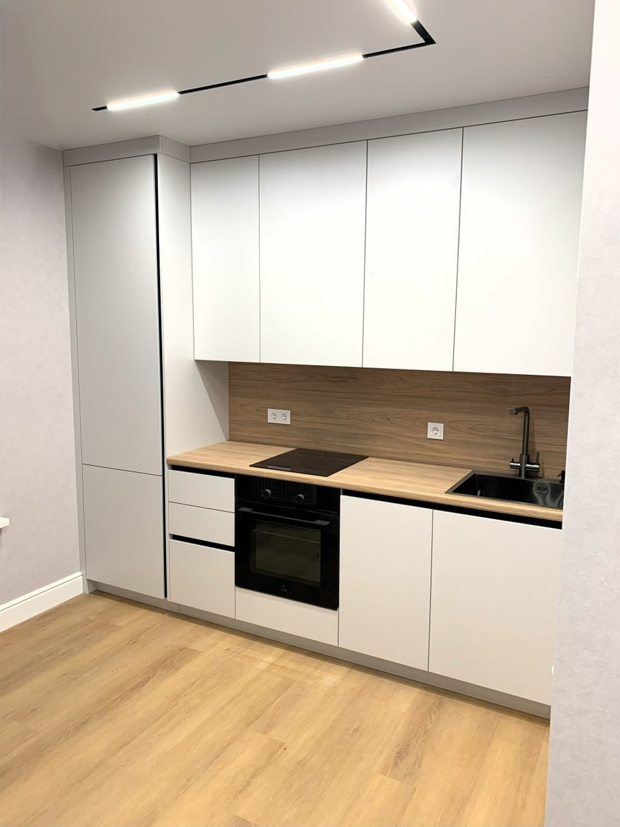 Мы выполнили заказ на изготовление мебели для молодой семьи в ЖК «Летний» в г.Сочи: кухня, шкаф-купе и небольшой шкаф в детскую