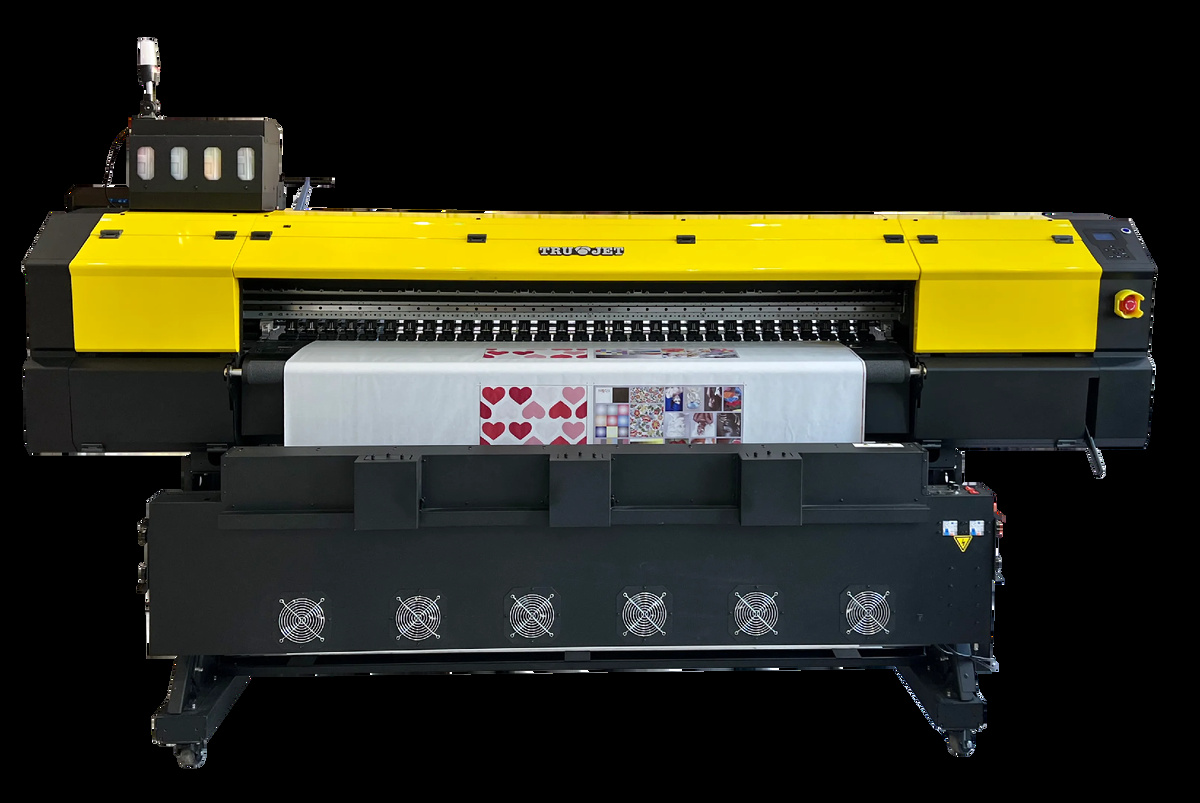 Современный широкоформатный плоттер для сублимации состоит из прочной металлической рамы, обеспечивающей жесткость всей конструкции, что критически важно для параллельности подающих, принимающих и вспомогательных валов, участвующих в проводке бумаги по всем частям устройства. Среди моделей с низкой скоростью печати (до 100 кв м в час) распространены конструкции с большим количеством пластиковых деталей и упрощенной схемой проводки бумаги, как правило без вспомогательных валов. Конструкция должна обеспечивать корректную проводку бумаги разной плотности (35–135 гр/м2) на высоких скоростях, ровную намотку на принимающий вал с одинаковым натяжением (ровный край, одинаковое натяжение на всей длине рулона имеют значение для стабильного процесса переноса изображения с бумаги на ткань в каландровом термопрессе). Современные модели должны иметь производительные сушильные модули, предназначенные для полного испарения влаги из сублимационной бумаги до ее намотки на принимающий вал. Он может иметь