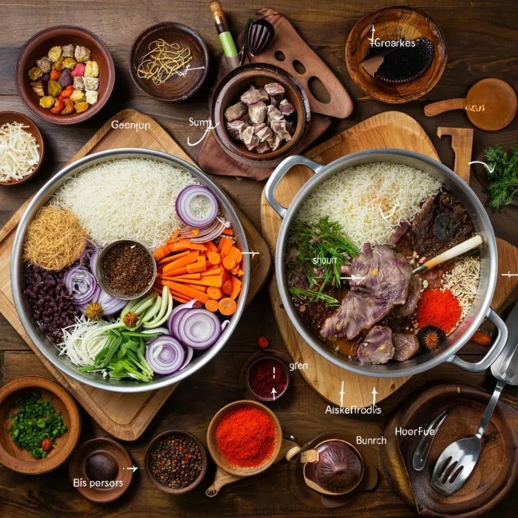 Настоящий узбекский плов является традиционным блюдом Средней Азии, однако существует несколько рецептов его приготовления, отличающихся набором ингредиентов и способами готовки. Рассмотрим наиболее популярные варианты рецепта. ▌ Классический рецепт узбекского плова Ингредиенты: - баранина — 800 г - рис девзира — 600 г - морковь — 600 г - лук репчатый — 3 шт. - чеснок — головка - зира — 1 ч.л. - курдючный жир — 100 г - растительное масло — 150 мл - соль, перец черный молотый — по вкусу Приготовление: 1. Обжарьте нарезанный кубиками курдючный жир до золотистого цвета. Удалите шкварки, добавьте растительное масло. 2. Нарежьте мясо крупными кусочками и обжарьте до румяной корочки. Добавьте крупно порезанные кольца лука и жарьте еще минут пять-семь. 3. Положите морковь, нарезанную соломкой, перемешайте и тушите около десяти минут. Посыпьте специями, посолите, поперчите. 4. Залейте горячей водой так, чтобы она покрыла содержимое казана примерно на два пальца сверху. Доведите до кипен