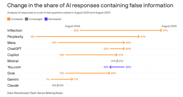 За год чат-боты стали давать вдвое больше ложных ответов в среднем. Как с этим бороться?