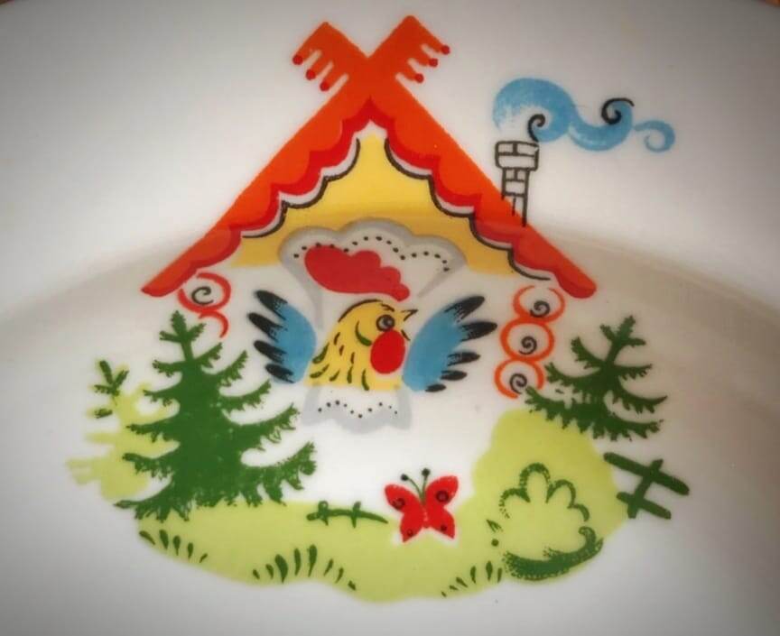 Ваш админ накануне поделился фотографией своей любимой тарелочки родом из детства. Фотографию раритета на фоне родной, деревенской клеёнки, прислала мама. И тут же одна из читательниц написала: «Ух ты, и у меня в деревне такая!» А другая добавила: «Да, только с лисичкой, а не с петушком».
