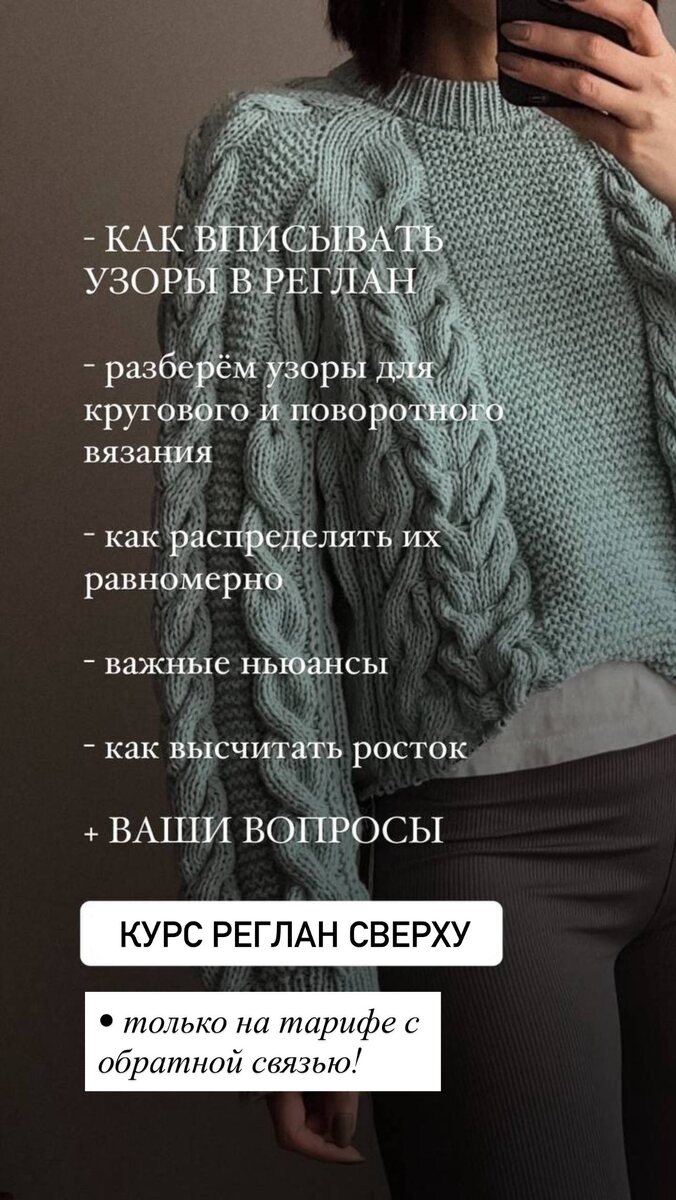 «Как вписывать узоры в изделия» - разберем на тарифе с обратной связью ☝🏻 курса РЕГЛАН СВЕРХУ
