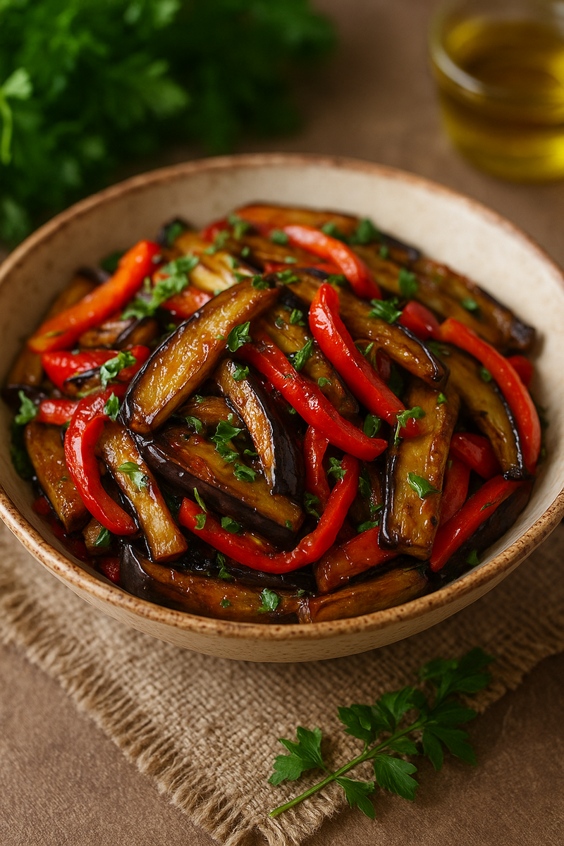 Нежные баклажаны с золотистой корочкой и сочный сладкий перец в ароматной маринадной заправке создают насыщенное и пикантное блюдо 😍. Такая закуска отлично подойдёт как для праздничного стола, так и для повседневного ужина.