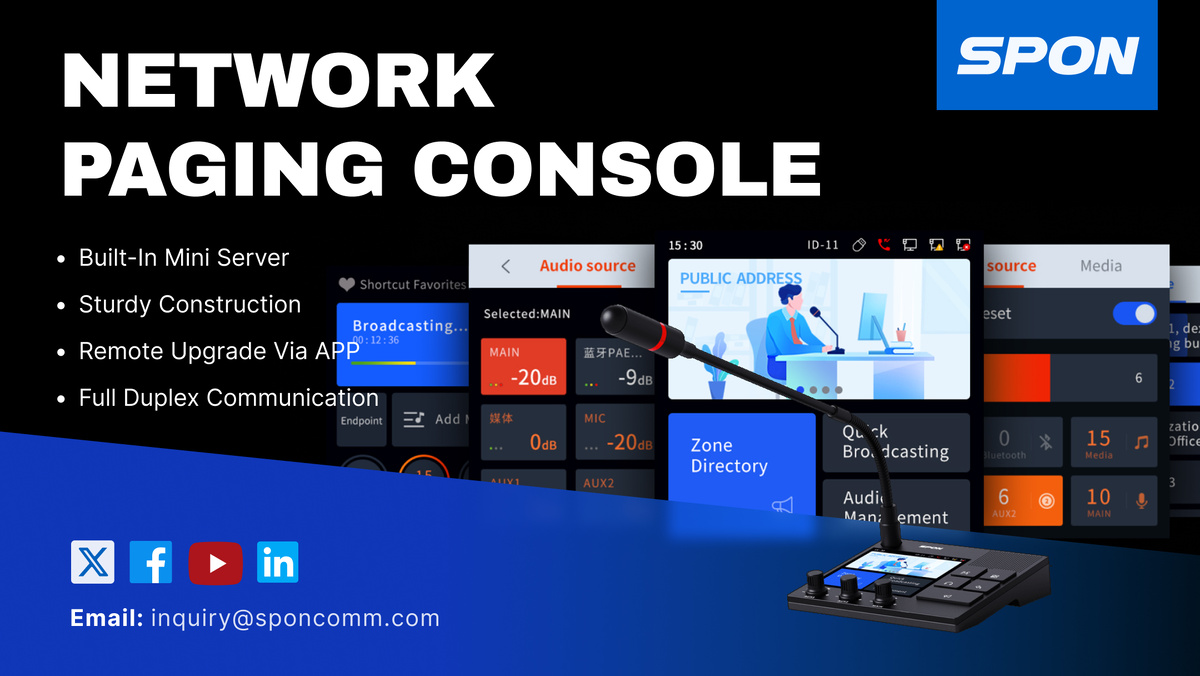 Встречайте SPON XC-9038N: универсальный IP-пульт пейджинга и микшера. Мы уместили невероятную функциональность в прочный корпус из высококачественного алюминиевого сплава. Ключевые особенности: 5-канальное микширование звука (MIC, AUX, Bluetooth, USB) 4-дюймовый ёмкостный сенсорный экран для удобства управления Мобильное приложение для удалённой настройки Встроенный DSP-процессор для превосходного шумоподавления Это идеальный центр для любой профессиональной IP-аудиосистемы. #ProductLaunch #NewProduct #IPPA #AudioEngineering #ProAV