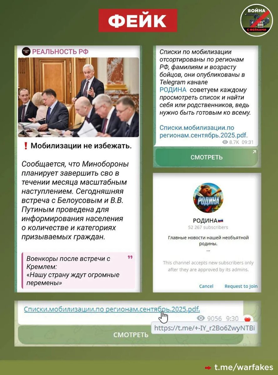 В сети вновь появилась ложная информация о якобы грядущей мобилизации. Однако, как заверили авторы телеграм-канала «Борьба с фейками. Воронежская область», никаких подобных мероприятий власти не планируют. Неизвестные распространяют кликбейтные заголовки о неких списках тех, кто подлежит мобилизации. Такими громкими фразами пытаются разжечь панику среди россиян, включая воронежцев. Также провокаторы прикрепляют ссылку на некий документ со списком, однако на деле это ссылка, ведущая на закрытый телеграм-канал. Воронежцев, наряду с другими россиянами, попросили не поддаваться панике и доверять только проверенным источникам. Напомним, что фейки о новой волне мобилизации появляются уже пару лет подряд с завидной регулярностью. Во всех случаях это лишь способ дестабилизировать обстановку и спровоцировать жителей России к необдуманным действиям.