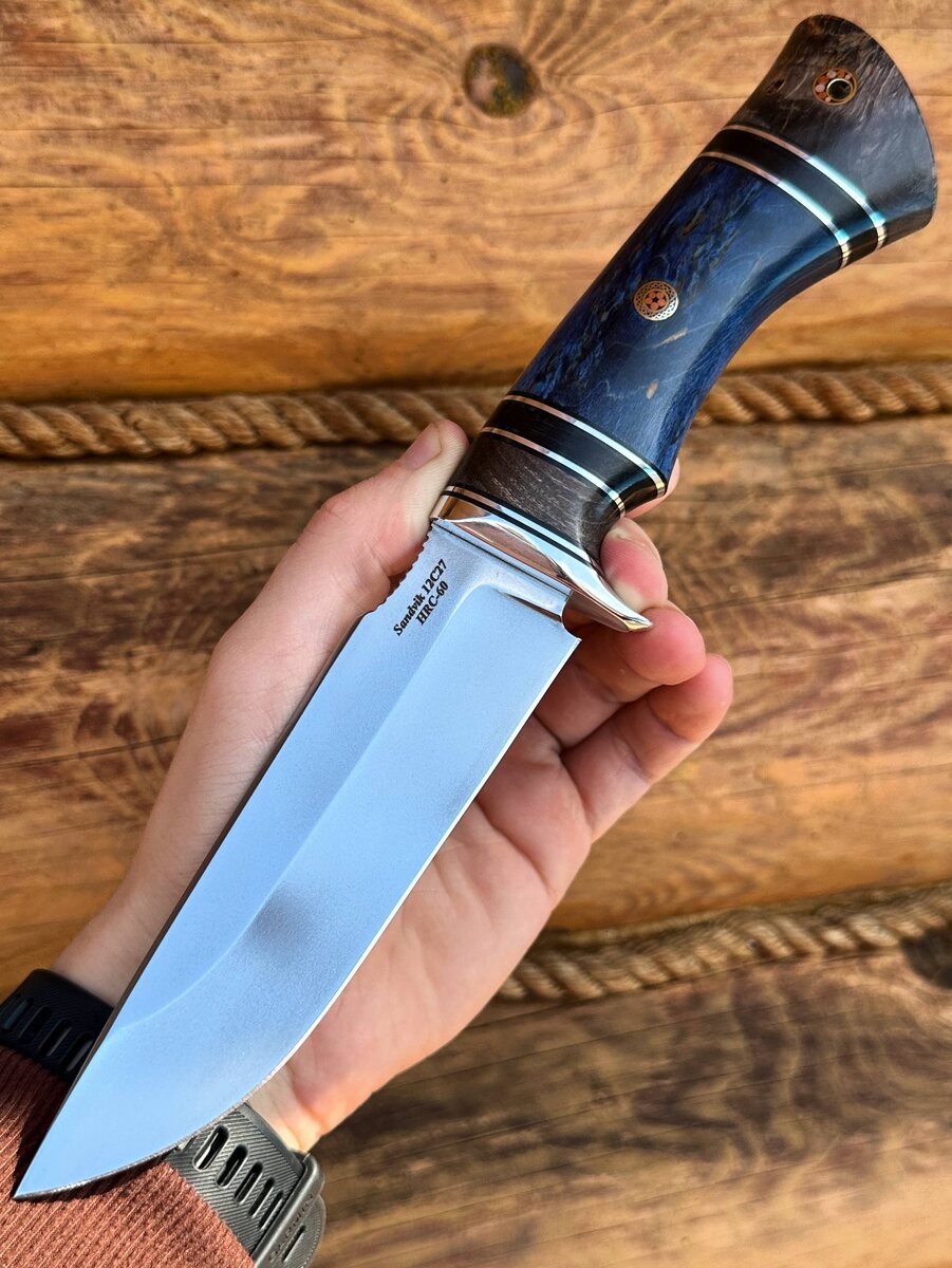 🔹 Разделочный нож “Алтай” — для тех, кто выбирает надёжность и стиль на долгие годы! 💙 Клинок из шведской нержавеющей стали Sandvik 12C27 (твёрдость 62 HRC) — сочетание остроты, износостойкости и защиты от коррозии. Для настоящих ценителей качества! 🌲 Рукоять — настоящее произведение искусства! • Наборная стабилизированная карельская берёза (синяя и янтарная) • Чёрный граб • Эффектный мозаичный пин — всё это не только красиво, но и удобно: нож уверенно лежит в руке даже при длительной работе. ✨ Особенности для ценителей: - Чуть вогнутая линза — легко режет и разделывает без залипания продуктов - Фальшлезвие и упор под большой палец — максимальный контроль - Бритвенная заточка - Антибликовая обработка — практично на охоте и рыбалке - Кожаные ножны в комплекте 💼 Хотите премиум-аксессуар? Изготовим формованные ножны из кожи растительного дубления (+8000 руб.) 🔥 Цена по акции: 8944₽ *(вместо 11180₽)* _👉 Пишите для заказа:_ @Nazarklinokbot или WhatsApp: +79101343831 #ножи #ручнаяра