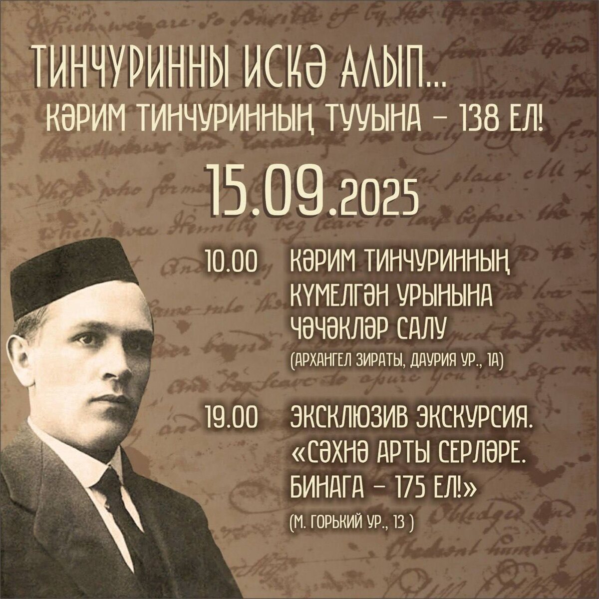 Театрыбыз 15 сентябрьдә — татар театрына нигез салучыларның берсе, күренекле драматург, актер, режиссер Кәрим Тинчуринны искә алачак Әлеге көннең программасын сезгә тәкъдим итәбез. teatrtinchurin