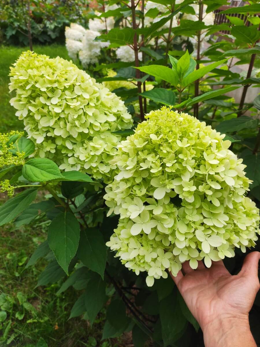 Гортензия «Лаймлайт» ✨ — один из самых эффектных и востребованных сортов метельчатой гортензии, настоящая жемчужина 💎, выведенная селекционерами Нидерландов 🇳🇱. Его название, переводящееся как «Лимонный Свет» 🍋💡, как нельзя лучше отражает уникальную особенность соцветий — они словно светятся изнутри, наполняя сад мягким свечением и магией преображения. Растение формирует крупный, раскидистый куст высотой до 2-2,5 метров и диаметром до 1,5-2 метров с крепкой, пышной шаровидной кроной 🌳. Благодаря такой внушительной форме он великолепно смотрится как в одиночной посадке, так и в составе живой изгороди 🌿. Также сорт отлично подходит для формирования штамбовой культуры, превращаясь в изящное цветущее дерево. Волшебная трансформация соцветий 🔮: Главное достоинство — огромные конические соцветия-метёлки длиной 25-30 см. Их окраска меняется в течение сезона: 🌸 Легкий аромат: Цветы источают очень нежный, едва уловимый приятный аромат. 🌤️ Местоположение и почва: Предпочитает полутень