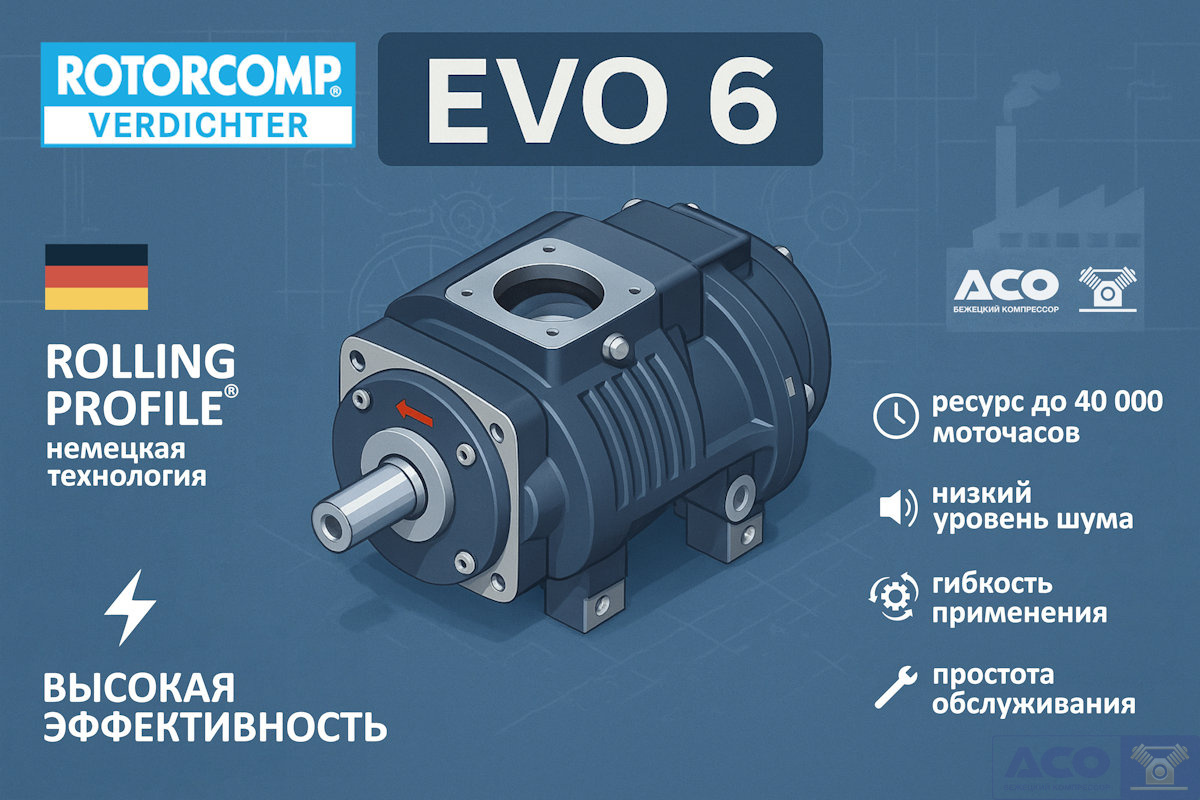Ключевым элементом винтового компрессора является винтовой блок — именно от него зависят надёжность, ресурс и энергоэффективность. Винтовые блоки серии EVO 6 от компании Rotorcomp представляют собой современное поколение компрессорных модулей, разработанных для обеспечения высокой производительности и надёжности. АО «Бежецкий завод АСО» более двух десятилетий применяет винтовые блоки Rotorcomp EVO 6 при производстве компрессоров серий АСО-ВК22 и АСО-ВК30. Сегодня компрессоры «АСО» на базе EVO 6 успешно работают на крупных предприятиях России, подтверждая высокий уровень качества и доверие заказчиков. Подберем оборудование под ваши задачи: 📞 8 800 550-46-17
