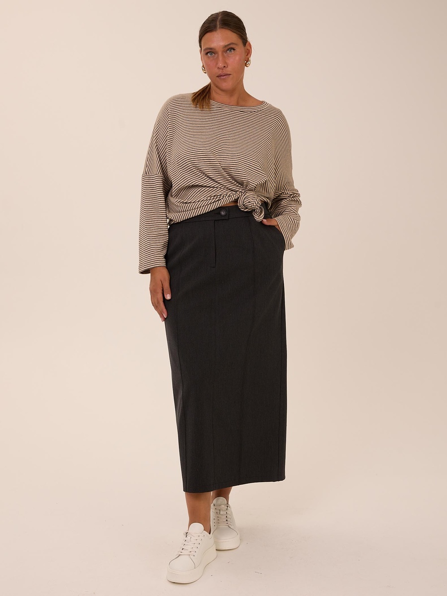 Одежда либо висит бесформенным мешком, либо, наоборот, обтягивает те зоны, которые наоборот хотелось бы скрыть. В Modress мы решили эту проблему раз и навсегда. Наши дизайнеры создают одежду, которая садится так, чтобы скрывать лишнее, подчёркивать формы и сохранять баланс между женственностью и комфортом. 1. Правильная посадка в зоне талии На примере юбки DORIAN вы видите, что девушки plus size могут позволить себе юбку-карандаш. Чтобы соблюсти фасон и не подчеркивать зону живота – спереди располагается широкий пояс. Мы против обтягивающих вещей, потому что знаем, что есть одежда по фигуре. 2. Акцент на вертикальные линии В наших фасонах часто используются V-образные вырезы, вытянутые швы и продуманные драпировки, которые визуально вытягивают силуэт, делая его стройнее. Кстати, V-образные вырезы очень удлиня