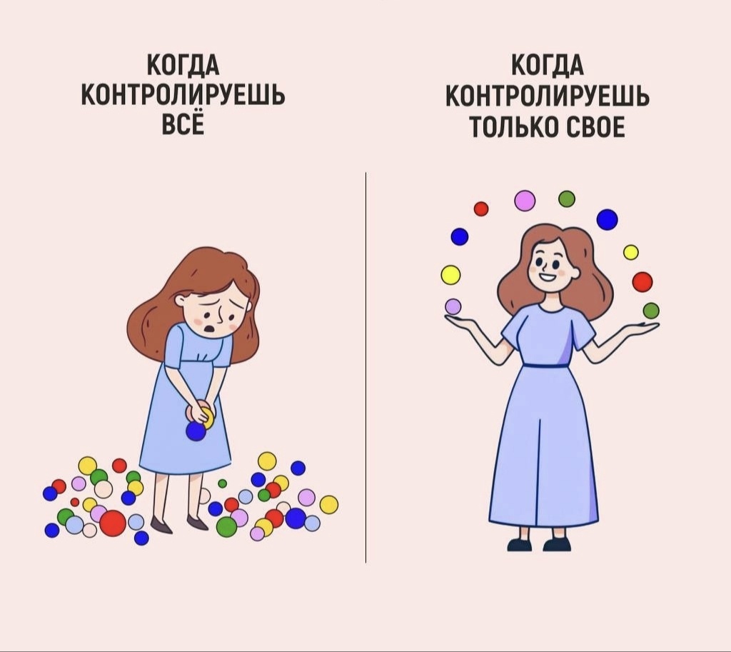 Мы часто думаем: «Если я буду всё контролировать — всё будет в порядке». Жизнь, работа, деньги, внешность, отношения — кажется, всё нужно держать под жёстким вниманием. На первый взгляд контроль даёт уверенность и порядок. Но на деле — часто становится источником тревоги, усталости и чувства, что жизнь ускользает сквозь пальцы. Некоторые планируют каждый шаг: от завтрака до отпусков. Поначалу это помогает, но малейший сбой выбивает из колеи. Тревога растёт, а ситуация могла быть совершенно обычной. 💡 Опора: планируйте только то, на что реально можете влиять. Всё остальное — принимайте как часть жизни. Знакомая мысль: «Если не я, то никто». Берёте на себя всё, а потом злитесь, что коллеги «не включаются». Итог — выгорание, бессонные ночи и ощущение, что вы тащите всех. 💡 Опора: контроль — это не «делать всё самой». Это умение делегировать, доверять и выстраивать границы. Диеты, спорт через «не могу», постоянные проверки в зеркале. Кажется: «Стоит расслабиться — и всё рух