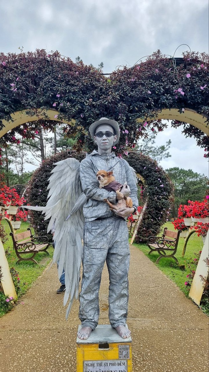 Издалека я подумал, что это скульптура, а побежал постамент проверить 🐕 И тут оказалось, что это живой вьетнамец 😄 Дождался, когда пройдёт толпа людей и попросился на ручки. Представляете, он мне не отказал 🥰