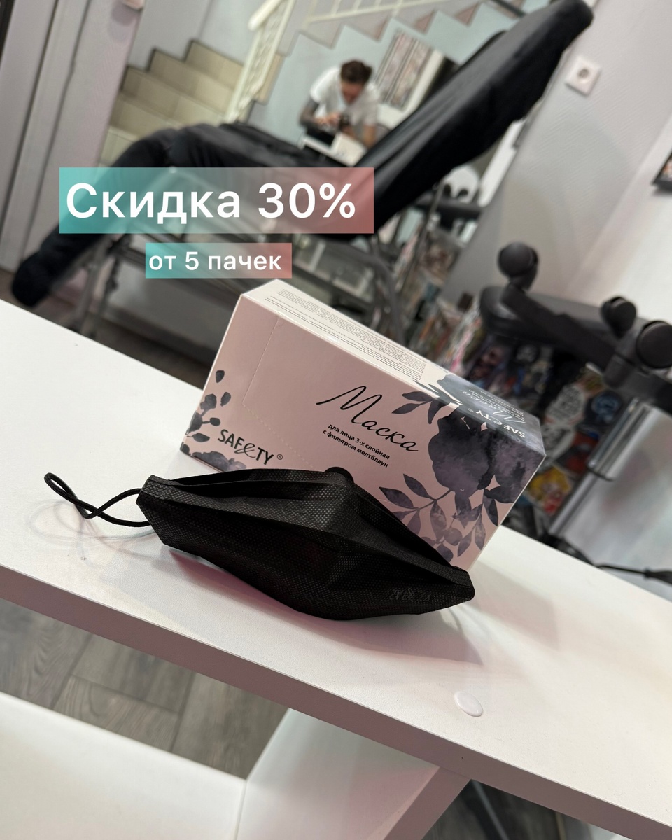 Предлагаем чёрные одноразовые медицинские маски для вашей работы. Сейчас действует специальное предложение: при покупке от 5 упаковок скидка составит 30%! Характеристики масок: Трёхслойные для надёжной защиты Удобный фиксатор для носа Мягкие резинки Стильный чёрный цвет Маски — необходимый элемент вашей работы. Они помогут создать доверительную атмосферу с клиентами и подчеркнут ваш профессионализм. Ссылка на продукцию - https://punktirtattoo.ru/catalog/barernaya-zashchita-perchatki/maska-mnogorazovaya-tkanevaya/?oid=28199 Связаться с нами можно в чате @punktirtattoo или по телефону +79999694219. Так же у нас можно арендовать рабочее место, сделать татуировку или же отремонтировать ваше оборудование. Контакты и отзывы: my.etag.store/Punktirtattoo График работы: пн-вс 11:00-20:00 Адрес: м. Белорусская, Ленинградский проспект, 7 стр 1 🔥