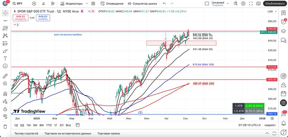 ВЫВОД: $SPY продолжает удерживаться выше всех скользящих + $DIA и $RSP продолжают прыгать по 10–20 EMA D — могут помочь рынку + $QQQ и $NQ1