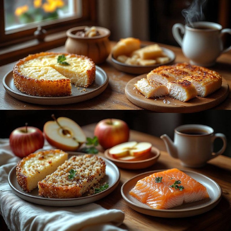 🍏 ПОЛНЫЙ ДЕНЬ ПИТАНИЯ: ВКУСНО, ПОЛЕЗНО И БЕЗ ЧУВСТВА ГОЛОДА! 🍽️ Не знаете, что приготовить сегодня? Ловите готовый план! Сбалансировано по БЖУ, достаточно клетчатки и энергии для продуктивного дня. И да, здесь есть место даже десерту! 😉 🌀 ВАШ ГИД ПО ДНЮ: ☀️ ЗАВТРАК (7:30-8:00) Сырники с малиной и мёдом 🥞 Творог 5% + яйцо + немного цельнозерновой муки. Без сахара в тесте, только сладость от ягод и ложечки мёда сверху. Почему это хорошо: Белок надолго даёт сытость, творог — источник кальция. 🥗 ОБЕД (13:00-13:30) Сочная куриная грудка с киноа и салатом🥑 Грудка, замаринованная в лимонном соке и травах, запечённая до сочности. На гарнир — отварная киноа с зеленью и салат из свежих овощей (огурец, помидор, авокадо) с ложкой оливкового масла. Почему это хорошо: Комплексные углеводы из киноа, белок и полезные жиры из авокадо. 🍎 ПЕРЕКУС (16:30-17:00) Яблоко с арахисовой пастой 🥜 Зелёное яблоко, нарезанное дольками, с 1-2 ч.л. натуральной арахисовой пасты (без сахара). Почему это хо