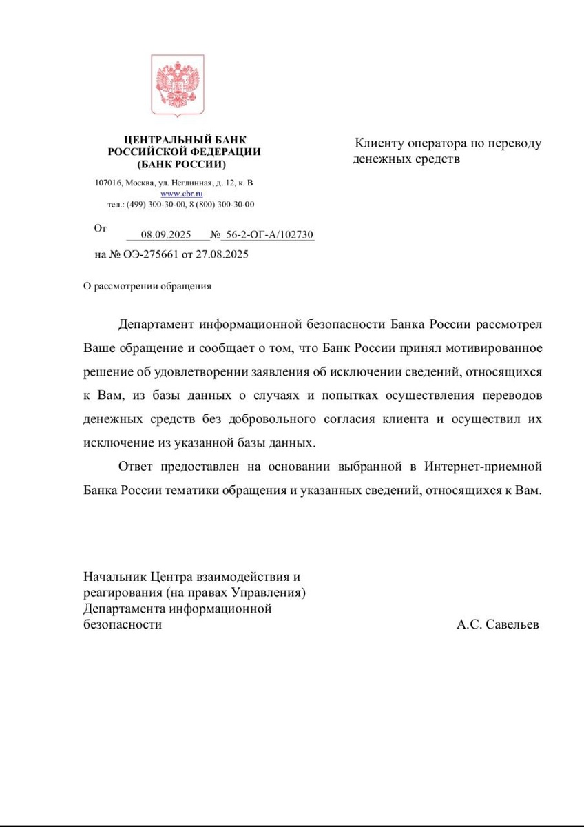 Когда разблокировка становится ловушкой: тонкости 161-ФЗ и риски повторного попадания в реестр На первый взгляд, разблокировка средств по 161-ФЗ — это победа: Центробанк снял ограничения, клиент получил доступ к своим деньгам, и история закрыта. Но практика показывает, что иногда это только начало нового витка юридических сложностей. Тонкая грань между разблокировкой и новой угрозой Часто клиенты радуются решению ЦБ, не подозревая, что "пострадавшая" сторона — та, чей перевод был перевод и инициировал вашу блокировку — может через месяцы обратиться в МВД с заявлением. И вот уже разблокированный счет снова попадает под подозрение, а его владелец — в реестр. Почему так происходит? - Временной лаг. Между разблокировкой и обращением в полицию может пройти несколько месяцев. За это время клиент успокаивается, а риски — нет. - Непрозрачность инициаторов. Даже после разблокировки не всегда ясно, кто и почему инициировал первоначальное ограничение. Без этого понимания невозможно предотврати