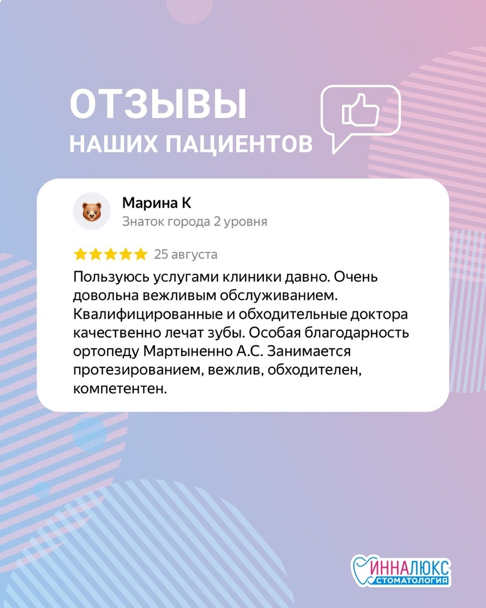 Большое спасибо за такой подробный и теплый отзыв! Нам очень приятно, что вы доверяете нам самое ценное — свое здоровье.
