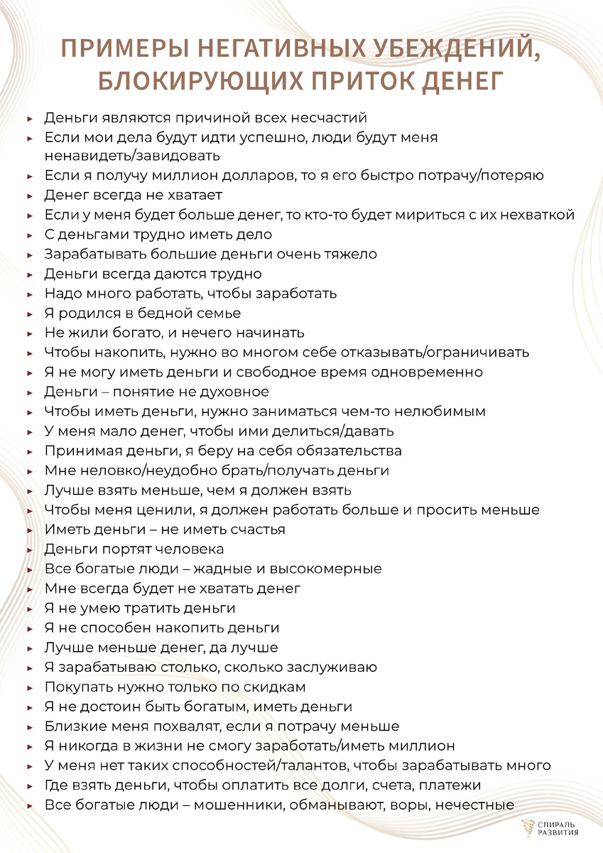 🖋️ Примерно такая нить разговора у меня вчера была с одной прекрасной девушкой. Причин отсутствия мужских вложений в вашу сторону может быть много и разных: 🟠низкая значимость 🟠отсутствие любви к себе и самоценности 🟠установки о долженствовании (он мне что-то подарил/купил/сделал - теперь я ему должна) 🟠неумение озвучивать свои желания и просьбы на высокой значимости 🟠установка “я недостойна” 🟠позиция “я сама, мне ничего не надо” 🟠неумение считывать мужчину дающего и мужчину потребляющего 🔔Но какая бы причина не была - она в итоге упрется в убеждения и установки в голове относительно денег и всего материального. Это в первую очередь - ваши установки о достойности. Они родом из детства, из родительских примеров: папа не заботился, не дарил цветы маме, не оказывал ей знаки внимания. Таким образом вы впитываете, что это норма. Норма - когда мужчина ничего не делает, не ухаживает, не дарит. 🟧Есть женщины, которые уверены, что мужчина в принципе не может искренне хотеть что-то по