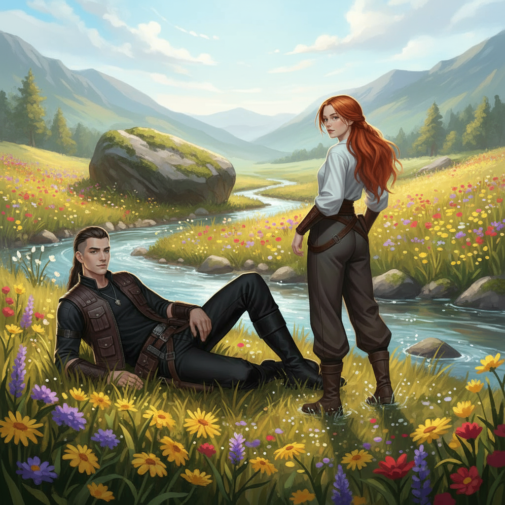 — Отлично! — проигнорировав его сомнения, Кидэ махнула рукой на плоский камень у ручья. — Садись сюда. — Она уселась на землю перед камнем, выпрямив спину и откинув голову назад. Вся эта огненная масса волос упала ей на спину и на камень тяжёлым, переливающимся, живым покрывалом. Ветер немедленно принялся играть прядями на макушке, закручивая их в мини-вихри. Ён замер позади неё, сжимая в потной, дрожащей руке гребень и глядя на это море, которое теперь было в его полном распоряжении. Оно пахло солнцем, травой и чем-то неуловимым, лёгким — может, полевыми цветами, среди которых она спала? Запах ударил в голову, как крепкое, незнакомое вино, кружа сознание.