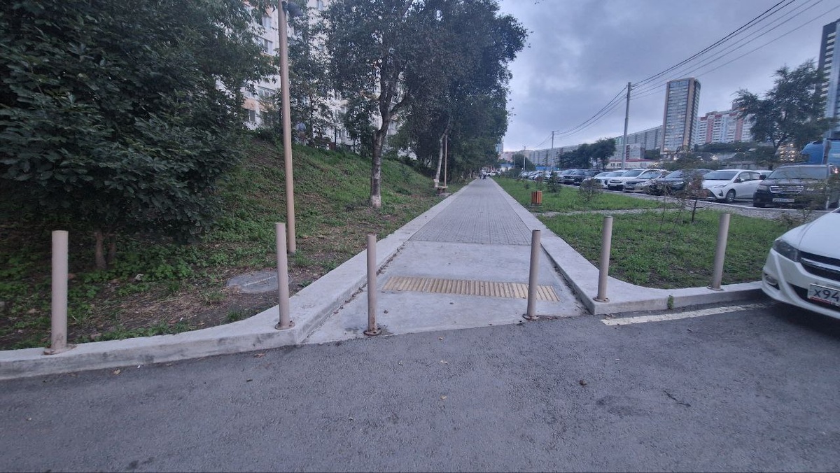 Урбансатанизм замечен на улице Жигура... видимо тут очень лютые автомобилисты и от них тротуар отгородили прям частоколом столбиков.
