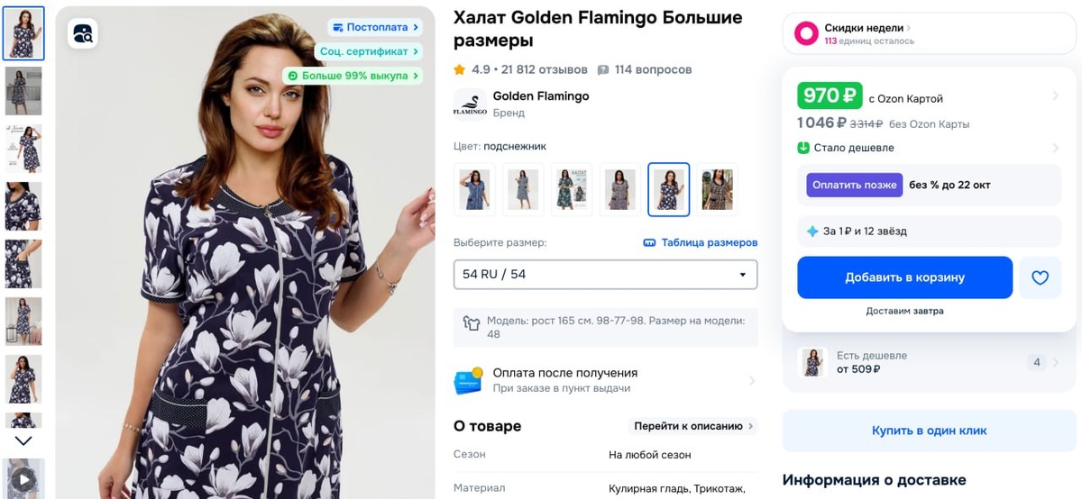 На Озоне Анжелина Джоли рекламирует женские халаты по 970 рублей 😳