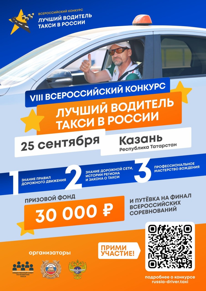 π₯ ΠΠ½ΠΈΠΌΠ°Π½ΠΈΠ΅, Π²ΠΎΠ΄ΠΈΡΠ΅Π»ΠΈ ΡΠ°ΠΊΡΠΈ Π Π΅ΡΠΏΡΠ±Π»ΠΈΠΊΠΈ Π’Π°ΡΠ°ΡΡΡΠ°Π½ π₯ Π ΠΠ°Π·Π°Π½ΠΈ 25 ΡΠ΅Π½ΡΡΠ±ΡΡ ΡΠΎΡΡΠΎΠΈΡΡΡ ΡΠ΅Π³ΠΈΠΎΠ½Π°Π»ΡΠ½ΡΠΉ ΡΡΠ°ΠΏ VIII ΠΡΠ΅ΡΠΎΡΡΠΈΠΉΡΠΊΠΎΠ³ΠΎ ΠΊΠΎΠ½ΠΊΡΡΡΠ° Β«ΠΡΡΡΠΈΠΉ Π²ΠΎΠ΄ΠΈΡΠ΅Π»Ρ ΡΠ°ΠΊΡΠΈ Π² Π ΠΎΡΡΠΈΠΈΒ». π° ΠΡΠΈΠ·ΠΎΠ²ΠΎΠΉ ΡΠΎΠ½Π΄ ΡΠ΅Π³ΠΈΠΎΠ½Π°Π»ΡΠ½ΠΎΠ³ΠΎ ΡΡΠ°ΠΏΠ°: 30 000 ΡΡΠ±Π»Π΅ΠΉ. π ΠΠΎΠ±Π΅Π΄ΠΈΡΠ΅Π»Ρ ΠΏΡΠ΅Π΄ΡΡΠ°Π²ΠΈΡ ΡΠ΅Π³ΠΈΠΎΠ½ Π½Π° Π²ΡΠ΅ΡΠΎΡΡΠΈΠΉΡΠΊΠΎΠΌ ΡΠΈΠ½Π°Π»Π΅, Π³Π΄Π΅ Π³Π»Π°Π²Π½ΡΠΉ ΠΏΡΠΈΠ· β ΠΠΠ’ΠΠΠΠΠΠΠ¬! ΠΠ΅ΡΠ΅Π»Π΅Ρ ΠΈ ΠΏΡΠΎΠΆΠΈΠ²Π°Π½ΠΈΠ΅ β Π·Π° ΡΡΠ΅Ρ ΠΎΡΠ³Π°Π½ΠΈΠ·Π°ΡΠΎΡΠΎΠ². π ΠΠ΄Π΅? ΠΠ°Π·Π°Π½Ρ, ΡΠ». ΠΡΠ΅Π½Π±ΡΡΠ³ΡΠΊΠΈΠΉ ΡΡΠ°ΠΊΡ, Π΄. 5, ΡΠ΅ΡΡΠΈΡΠΎΡΠΈΡ Π£ΠΏΡΠ°Π²Π»Π΅Π½ΠΈΡ ΠΠΎΡΠ°Π²ΡΠΎΠΈΠ½ΡΠΏΠ΅ΠΊΡΠΈΠΈ ΠΠΠ ΠΏΠΎ Π Π΅ΡΠΏΡΠ±Π»ΠΈΠΊΠ΅ Π’Π°ΡΠ°ΡΡΡΠ°Π½. ΠΠ°ΡΠ°Π»ΠΎ ΠΌΠ΅ΡΠΎΠΏΡΠΈΡΡΠΈΡ Π² 10:00. π Π£ΡΠ°ΡΡΠΈΠ΅ ΠΠΠ‘ΠΠΠΠ’ΠΠ! Π Π΅Π³ΠΈΡΡΡΠΈΡΡΠΉΡΠ΅ΡΡ ΠΏΡΡΠΌΠΎ ΡΠ΅ΠΉΡΠ°Ρ π https://russia-driver.taxi/#participate ΠΡΠ³Π°Π½ΠΈΠ·Π°ΡΠΎΡ β ΠΠ±ΡΠ΅ΡΡΠ²Π΅Π½Π½ΡΠΉ Π‘ΠΎΠ²Π΅Ρ ΠΏΠΎ ΡΠ°Π·Π²ΠΈΡΠΈΡ ΡΠ°ΠΊΡΠΈ ΠΏΡΠΈ ΠΏΠΎΠ΄Π΄Π΅ΡΠΆΠΊΠ΅ ΠΠΈΠ½ΠΈΡΡΠ΅ΡΡΡΠ²Π° ΡΡΠ°Π½ΡΠΏΠΎΡΡΠ° ΠΈ Π΄ΠΎΡΠΎΠΆΠ½ΠΎΠ³ΠΎ Ρ