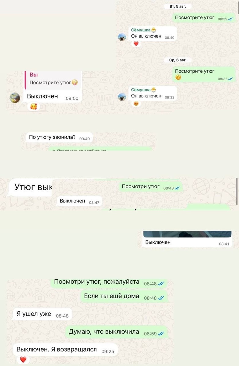 Мой утюг и мой мозг ведут тихую войну. Побеждает утюг. Почти каждое утро мои семейные чаты выглядят именно так. Не знаю, что это: склероз, рассеянность или утюг так хочет моего внимание, но он теперь главный персонаж моей бытовой тревоги - я действительно дважды оставила его включенным. В первый раз мы уехали, в дороге меня осенило. Хорошо, родители заехали – и да, утюг трудился вхолостую. Во второй раз Саша на обеде обнаружил, что утюг все еще работает. Вот, что значит перестать гладить белье, а гладить его только перед выходом.