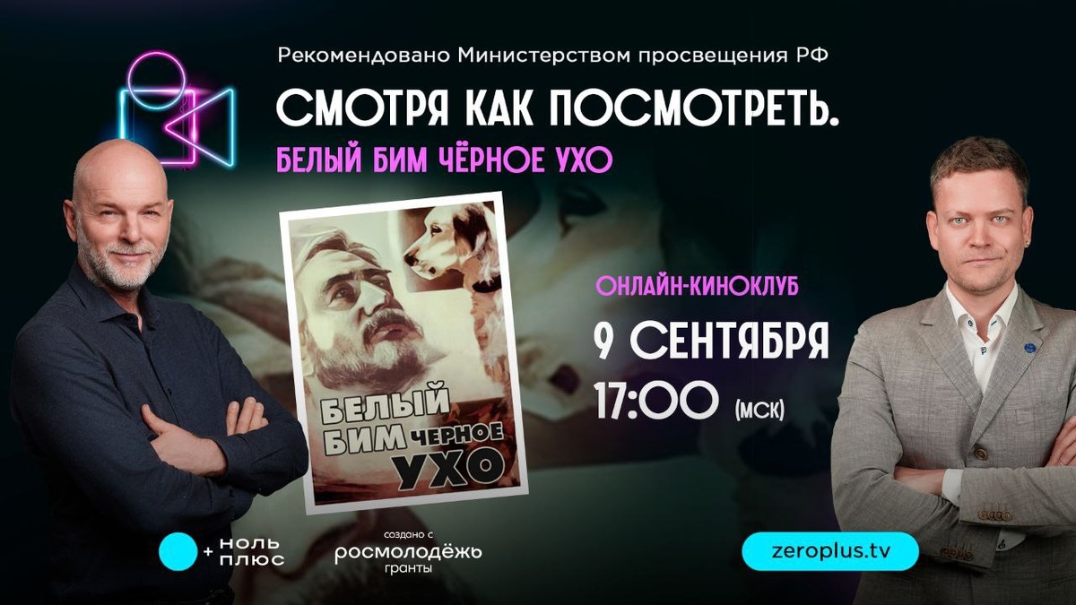 💙💙💙💙💙💙💙💙 «Тема эфира — задача со звёздочкой» Дополним этот комментарий к нашему анонсу. Сегодняшний эфир клуба «Смотря как посмотреть» тоже будет «со звёздочкой». Давайте вместе узнаем, как эту сложную задачку решат Николай Данн и Пётр Агеев. ⚡️ Вторник, 9 сентября, 17:00 по московскому времени ⚡️ Онлайн-киноклуб «Смотря как посмотреть» ⚡️ Фильм «Белый Бим Черное ухо» В центре обсуждения вопрос, смотреть или не смотреть фильм, вызывающий столь бурные споры. А главное, показывать или не показывать его детям? Еще и в 5 классе, как предписывает Минпросвещения... А если все-таки показывать, то как, какие слова будут правильными и смогут подготовить юных зрителей к просмотру? Площадки трансляции 👇 🌐 ВКонтакте 🌐 Rutube 🌐 YouTube Напомним: в ходе встречи ведущие объявят результаты Всероссийского конкурса «Лучший кинопедагог» этого года. Не пропустите ❤️ #новости_кинопедагогики #практическая_кинопедагогика